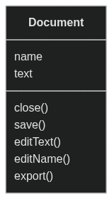 必ずしも、概念モデルと実装モデルが一対一に対応するわけではありません。 例えば、Wordなどで文章を管理する際の概念としてDocumentという概念モデルがあるとします。 この概念モデルは、クラス図を用いて次のように書けます。